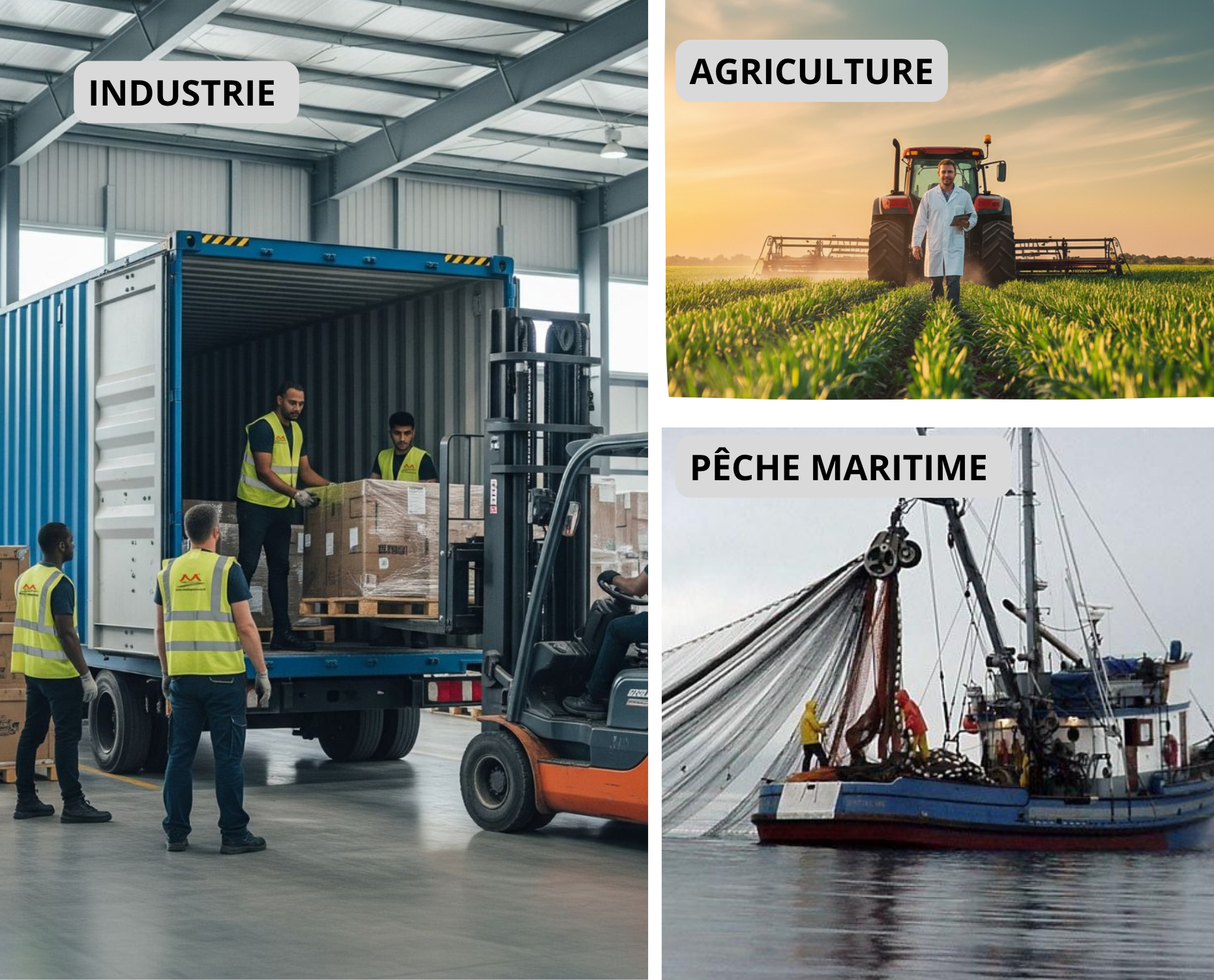 Notre société est spécialisée dans l’importation et la vente de matériel industriel, agricole et maritime, offrant des solutions fiables et performantes pour accompagner le développement des entreprises dans les secteurs de l’industrie, de l’agriculture et de la pêche. Grâce à une sélection rigoureuse de nos équipements, nous garantissons qualité, durabilité et efficacité pour répondre aux besoins de nos clients.